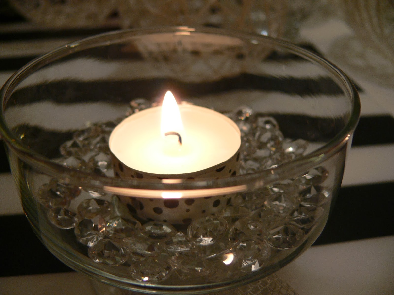 Pasin tädiltä sain idean: jätetään rusetit pois ja tuodaan teeman valkoista väriä tuikkuihin helmin. Timanttien joukkoon lisättäisiin siis muutamia helmiä.